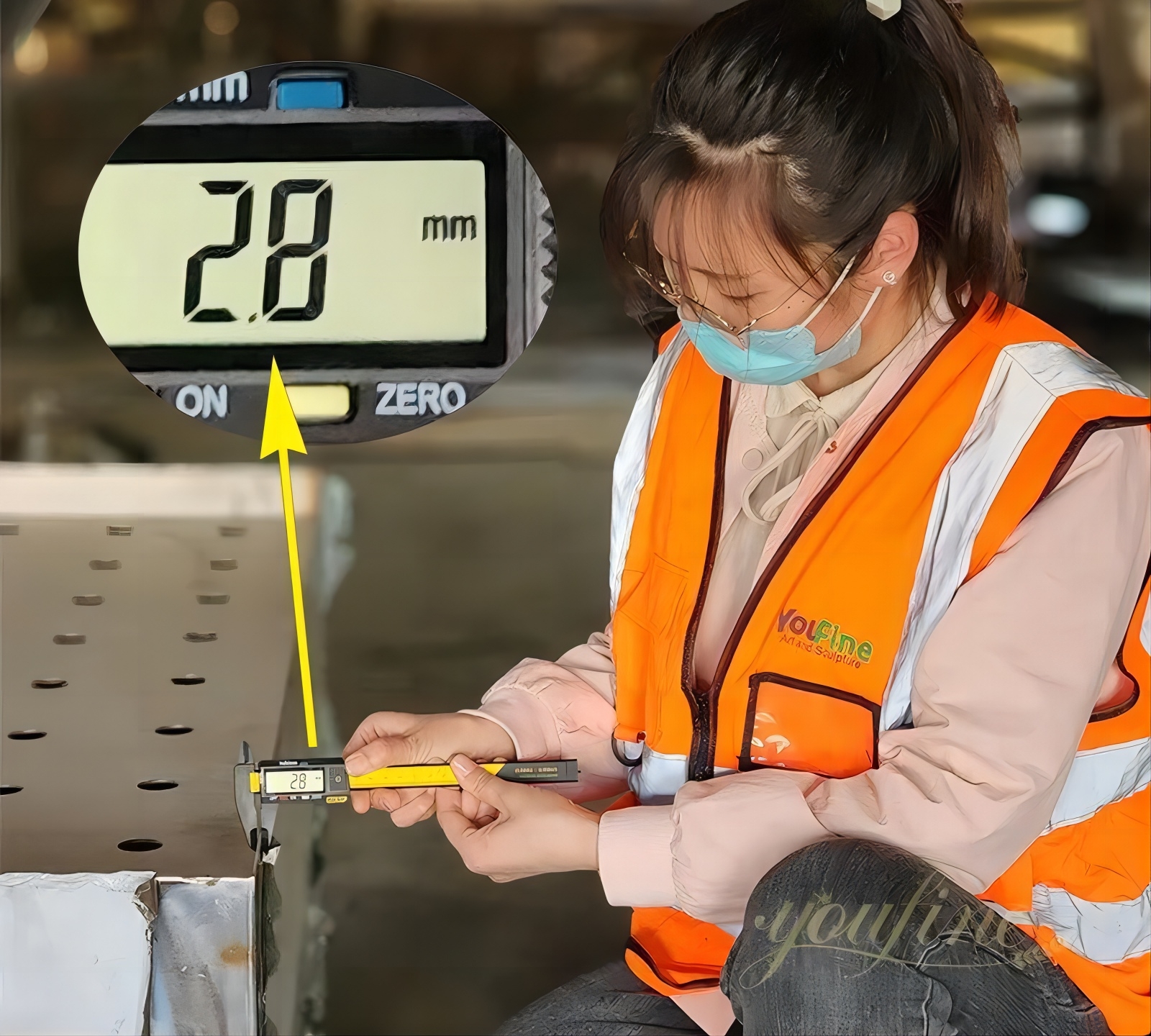 As large metal water features, the quality of the material undergoes rigorous testing, needing to withstand the elements over time. YouFine maintains strict standards for selecting outdoor fountain materials, opting for high-quality 304 or 316 stainless steel as raw materials due to their resistance to rust. During the manufacturing process of the water fountain, YouFine’s factory first constructs a sturdy skeleton, followed by rust-proof treatment to further prevent rusting and ensure the longevity of the sculpture.